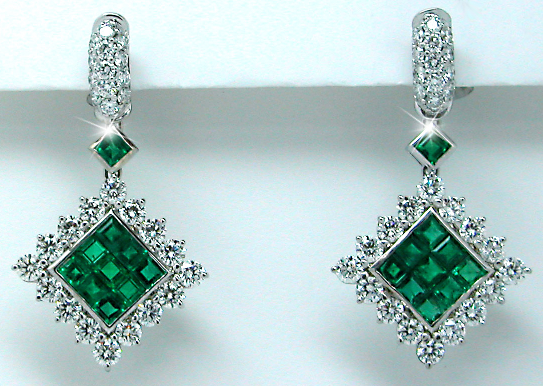 Invisibly Set Princess Cut Emeralds Earrings
